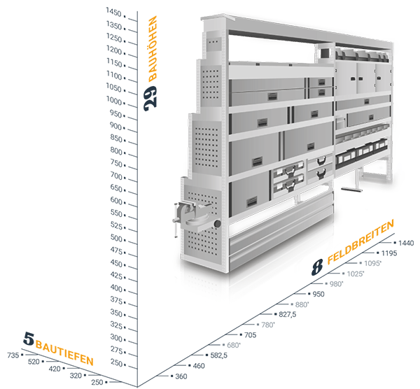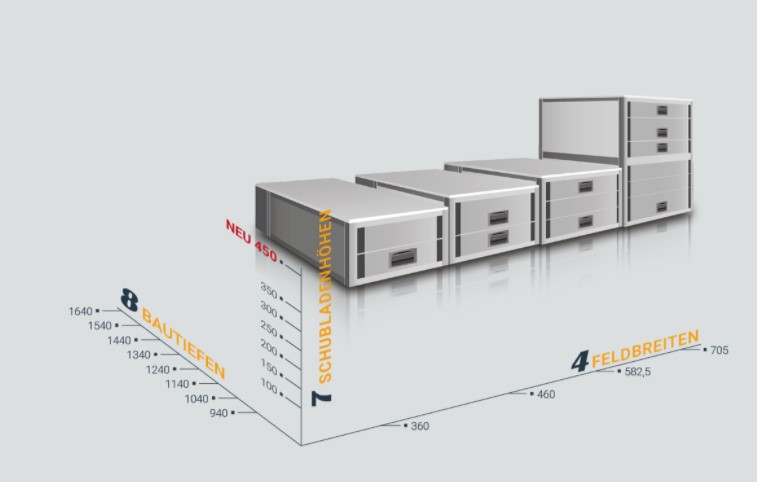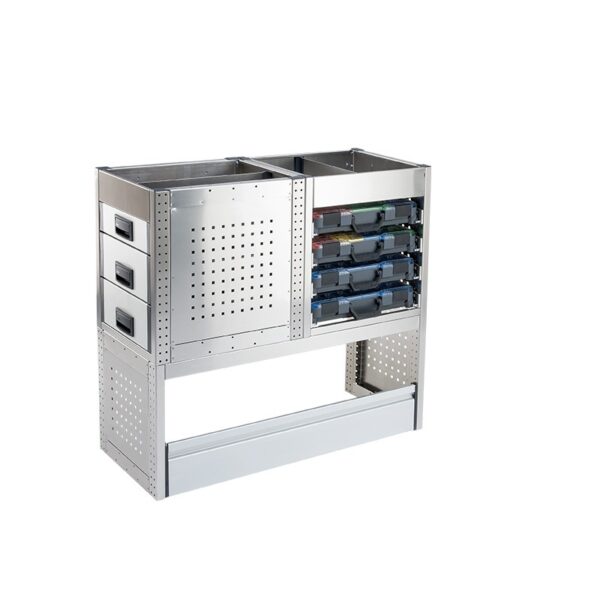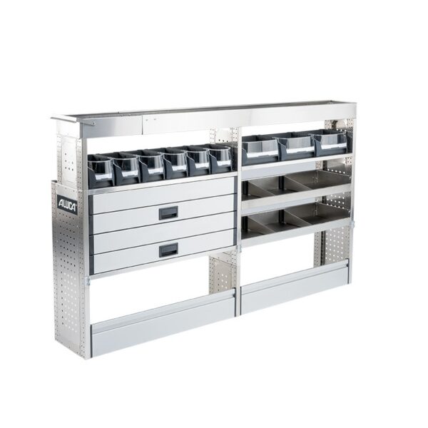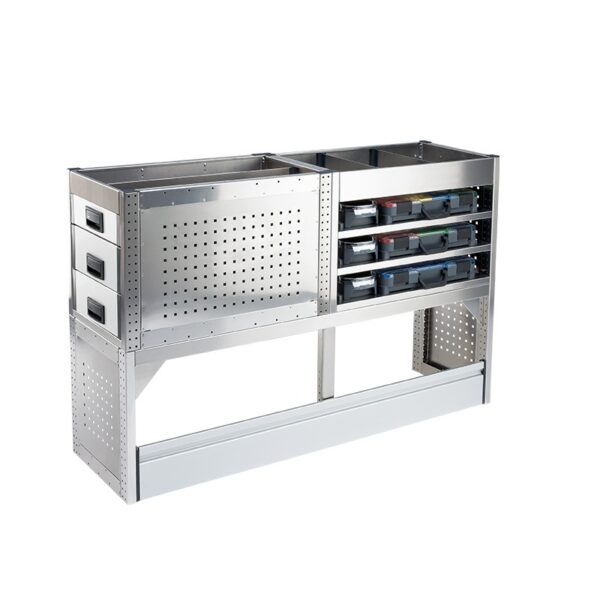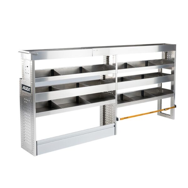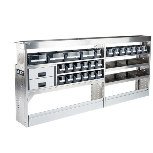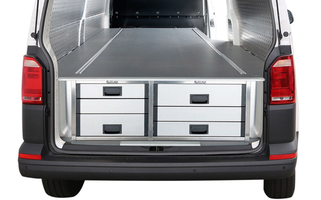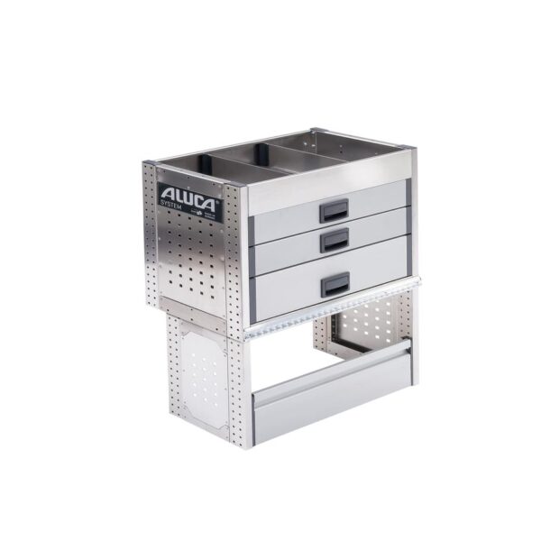 Με τα συστήματα Aluca dimension 2 συνεχίζετε να έχετε όλη την επιφάνεια φόρτωσης ελεύθερη. Τα συρτάρια μπορούν να ανοίγουν ή προς τα πίσω ή δεξιά και αριστερά από τις πλαϊνές πόρτες.